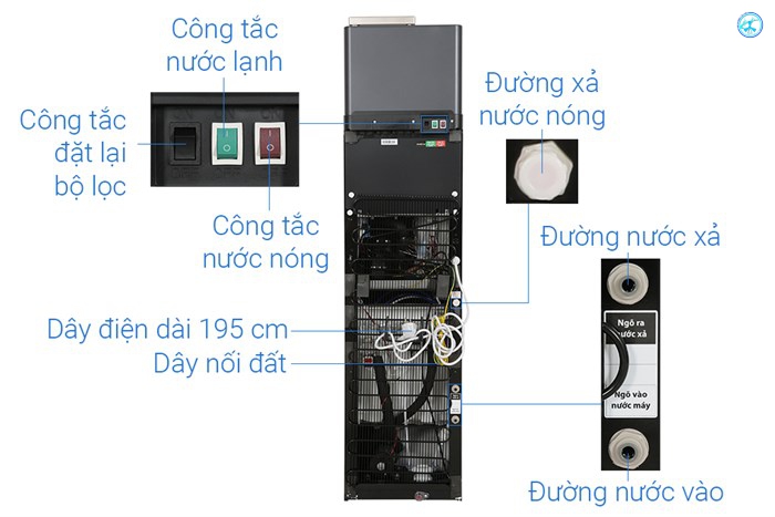 Nước nóng 45 - 70 - 95°C, lạnh ≤10°C, tạo nước kiềm Alkaline giúp trung hòa axit và bổ sung Hydrogen chống oxy hóa.